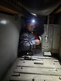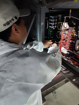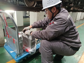 春节将至,驻上海南服务站的售后服务人员王金水对公司生产的空调装置、牵引变流器等产品进行日常检查,保障车辆正常上线运行,为旅客提供舒适的出行体验。